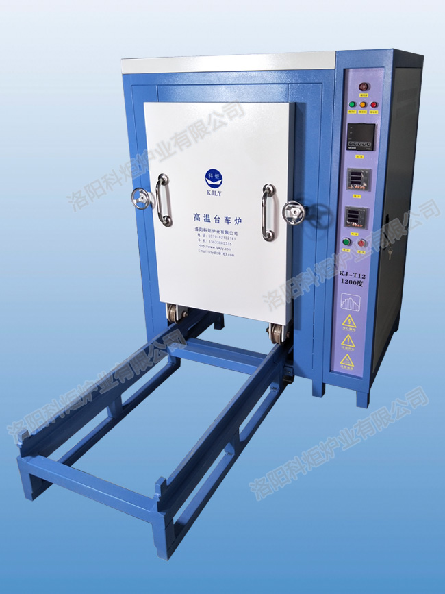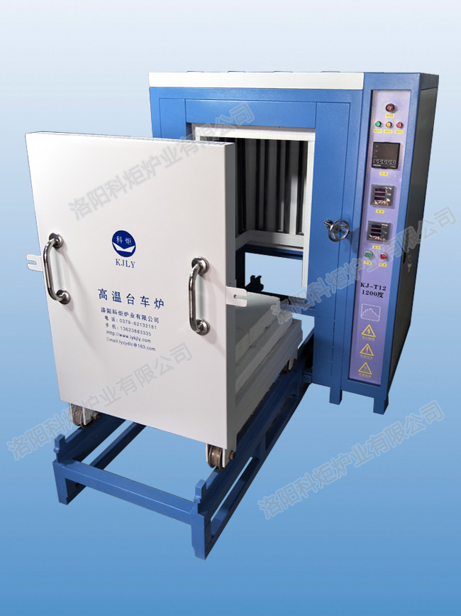 高温台车炉为长方箱形结构,承重平台为可移动小车,工件堆放在工作台上,进出电动推车传动,炉门上下开关,电动控制;炉衬采用轻质氧化铝纤维板拼装而成的炉体,炉底采用轻质保温砖和重质可承重耐火砖砌筑,加热元件采用电阻丝和电阻带加热;硅碳棒,硅钼棒,炉体外壳采用钢板和型钢制作,炉门、台车采用机械传动;具体配置按客户和炉温要求设计配备。